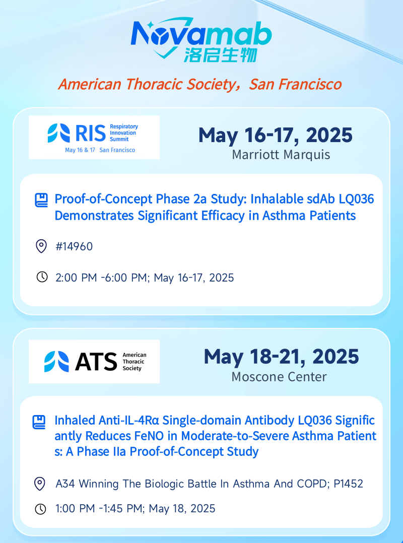 中国上海,2025年5月13日——上海必一运动官网生物医药技术有限公司,一家专注于纳米抗体创新药研发的生物技术企业,今日宣布:必一运动官网生物将于当地时间5月16日至21日赴美国加州旧金山,受邀参加美国胸科学会(American Thoracic Society, ATS)主办的呼吸创新峰会(Respiratory Innovation Summit,RIS)及ATS国际大会。届时必一运动官网生物将分别在RIS和ATS两场大会上以壁报形式呈现最新临床数据——公司自主研发的靶向 IL-4Rα 吸入性生物制剂 LQ036 首个 IIa 期概念验证性临床试验数据。本次展示将全面披露 LQ036 在中重度哮喘患者中的安全性、耐受性、药效指标及初步疗效,标志着必一运动官网生物在下一代呼吸道吸入式生物制剂开发领域迈出关键里程碑。